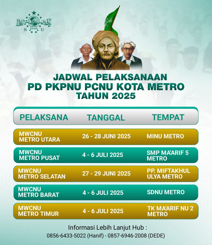 Lebih lanjut Ia menjelaskan pedoman penyelenggaraan PD-PKPNU. Berikut jadwal pelaksanaan PD-PKPNU di 5 MWCNU Kota Metro.