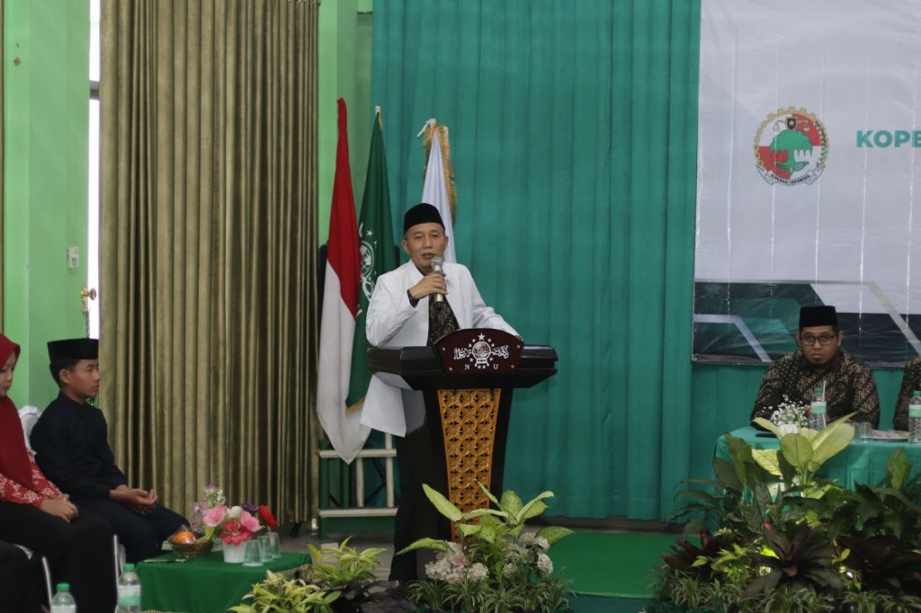 Sambutan Ketua Koperasi Nahdlatut Tujjar, Hi. Agus Rinasyaka, berikan apresiasi kepada seluruh pengurus dan anggota atas dedikasinya sehingga koperasi terus berkembang.